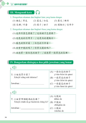 IV. Dengarkan dialognya dan pilih jawaban yang benar