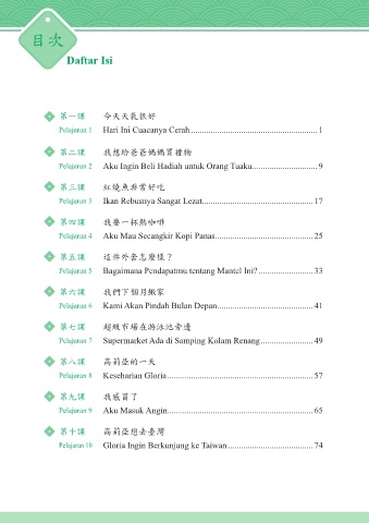 Pelajaran 10 Gloria Ingin Berkunjung ke Taiwan ....................................... 74