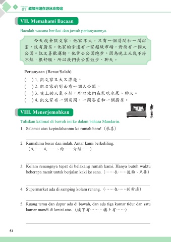 4. Supermarket ada di samping kolam renang.(……在……的旁邊)