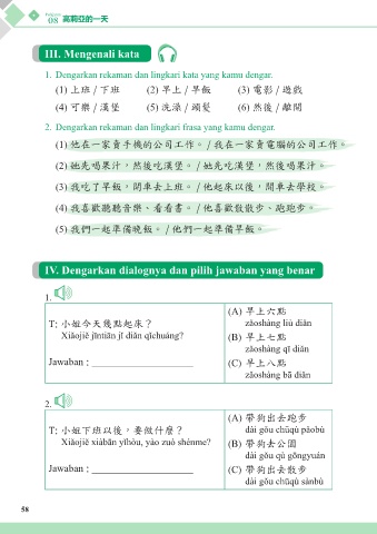 IV. Dengarkan dialognya dan pilih jawaban yang benar