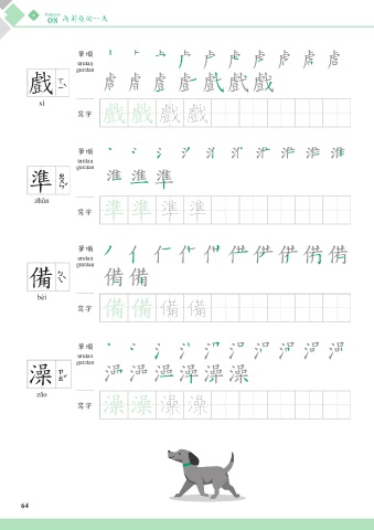 Pelajaran 08 高莉亞的一天 筆順 urutan guratan 戲 xì 戲戲 戲 戲 寫字 筆順 urutan guratan 準 zhǔn 準準 準 準 寫字 筆順 urutan guratan 備 bèi 備備 備 備 寫字 筆順 urutan guratan 澡 zǎo 澡澡 澡 澡 寫字 64 64