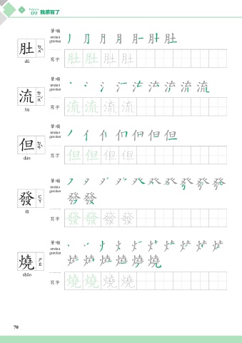 Pelajaran 09 我感冒了 筆順 urutan guratan 肚 dù 寫字 肚肚 肚 肚 筆順 urutan guratan 流 liú 寫字 流流 流 流 筆順 urutan guratan 但 dàn 寫字 但但 但 但 筆順 urutan guratan 發 fā 發發 發 發 寫字 筆順 urutan guratan 燒 shāo 燒燒 燒 燒 寫字 70