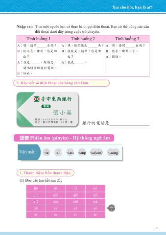 Nhập vai: Tìm một người bạn và thực hành gọi điện thoại. Bạn có thể dùng các câu