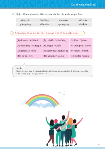 3. Nhận dạng từ có hai âm tiết: Khoanh tròn từ bạn nghe được