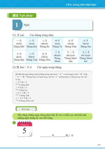Để diễn đạt ngày tháng, đặt tên tháng trong năm trước “ 月 ” và sốcủangày trước “ 號 ” hoặc