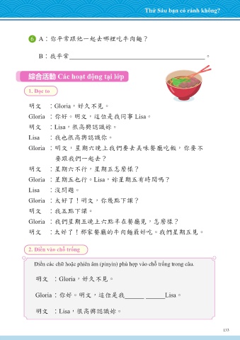 Gloria :星期五也行。Lisa,妳星期五有時間嗎?