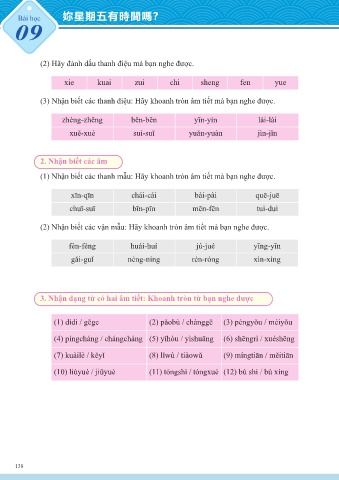 (3) Nhận biết các thanh điệu: Hãy khoanh tròn âm tiết mà bạn nghe được.
