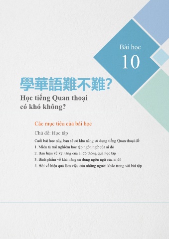 Cuối bài học này, bạn sẽ có khả năng sử dụng tiếng Quan thoại để