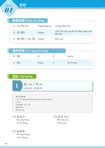 Tôi họ Wang. Tôi họ Lee.