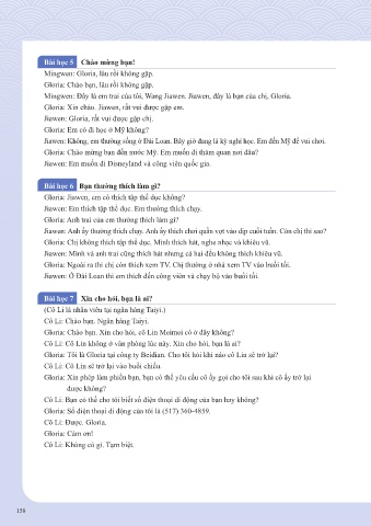 Gloria: Chào bạn. Xin cho hỏi, cô Lin Meimei có ở đây không?
