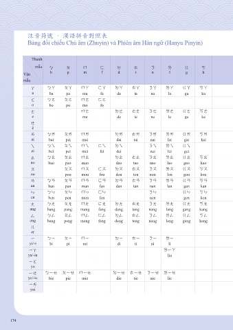 Bảng đối chiếu Chú âm (Zhuyin) và Phiên âm Hán ngữ (Hanyu Pinyin)