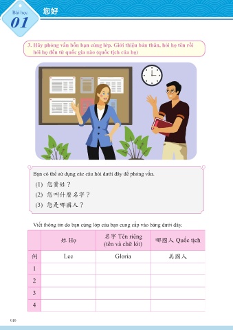 3. Hãy phỏng vấn bốn bạn cùng lớp. Giới thiệu bản thân, hỏi họ tên rồi