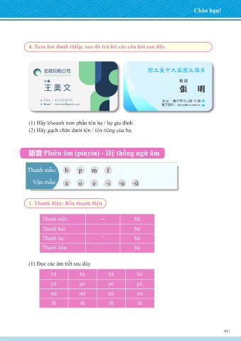 4. Xem hai danh thiếp, sau đó trả lời các câu hỏi sau đây.