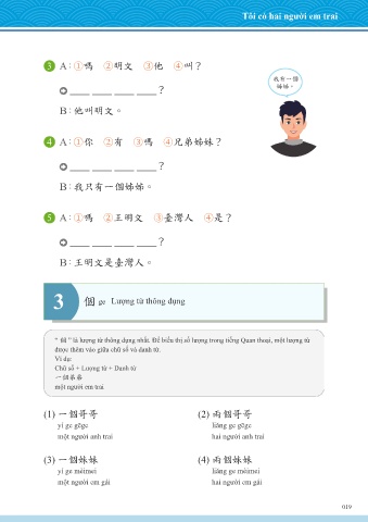 3 A : ①嗎 ②明文 ③他 ④叫?