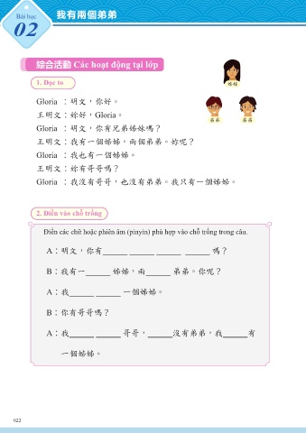 王明文: 我有一個姊姊,兩個弟弟。妳呢?