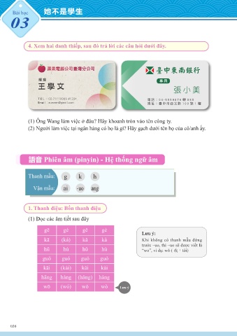 (2) Người làm việc tại ngân hàng có họ là gì? Hãy gạch dưới tên họ của cô/anh ấy.