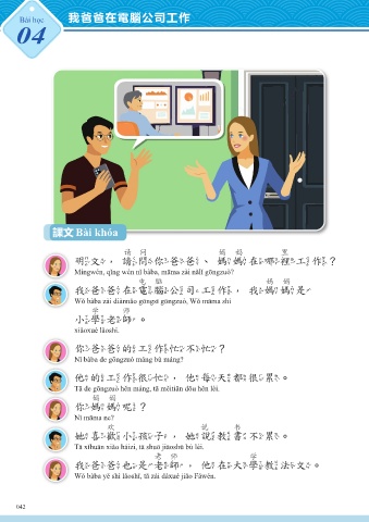 王明文 王明國 王爸 王媽 Gloria Tā de gōngzuò hěn máng, tā měitiān dōu hěn lèi.