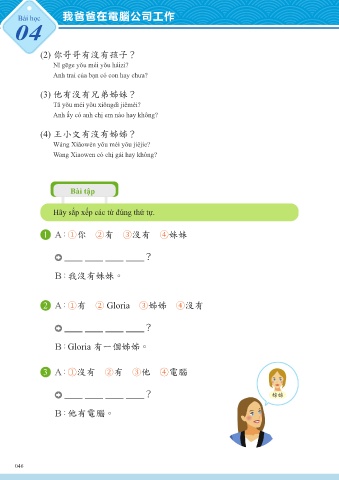 2 A : ①有 ② Gloria ③姊姊 ④沒有
