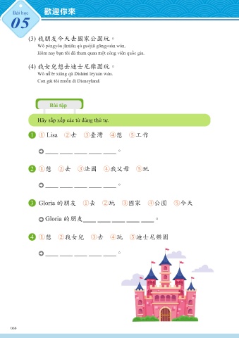 4 ①想 ②我女兒 ③去 ④玩 ⑤迪士尼樂園