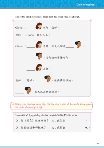 4. Phỏng vấn bốn bạn cùng lớp. Hỏi họ sống ở đâu và họ muốn tham quan