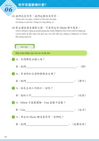 4 A:Gloria 不喜歡運動,Lisa 喜歡不喜歡?