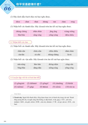 (3) Nhận biết các thanh điệu: Hãy khoanh tròn âm tiết mà bạn nghe được.