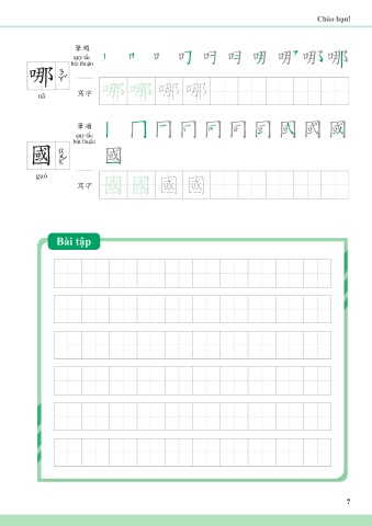 Chào bạn! 筆順 quy tắc bút thuận 哪 nǎ 寫字 哪哪 哪 哪 筆順 quy tắc bút thuận 國 guó 寫字 國國 國 國 Bài tập 7