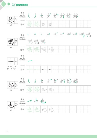 Bài học 我有兩個弟弟 02 筆順 quy tắc bút thuận 妳 nǐ 寫字 妳妳 妳 妳 筆順 quy tắc 嗎 bút thuận ma 寫字 嗎嗎 嗎 嗎 筆順 quy tắc 一 bút thuận 一 ˊ ˋ ㄧ / ㄧ / ㄧ yī / yí / yì 寫字 一一 一一 筆順 quy tắc 姊 bút thuận jiě 寫字 姊姊 姊 姊 筆順 quy tắc 也 bút thuận yě 寫字 也也 也 也 12
