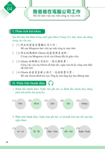 1. Đánh dấu thanh điệu: Nghe bản ghi âm và đánh dấu thanh điệu đúng