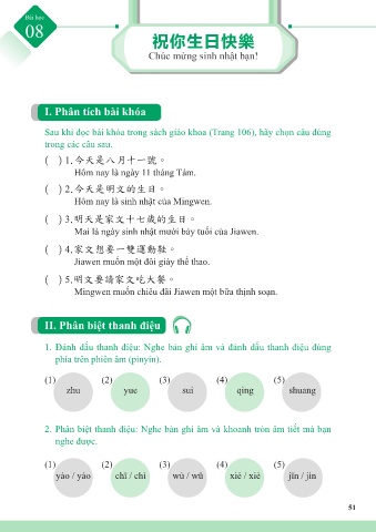 2. Phân biệt thanh điệu: Nghe bản ghi âm và khoanh tròn âm tiết mà bạn