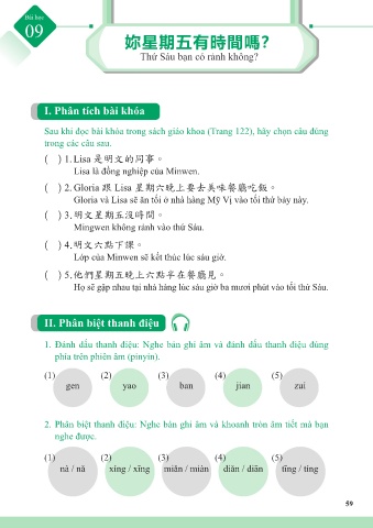 2. Phân biệt thanh điệu: Nghe bản ghi âm và khoanh tròn âm tiết mà bạn
