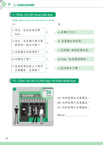 4. 你幾點下課? d. Lisa,很高興認識妳。