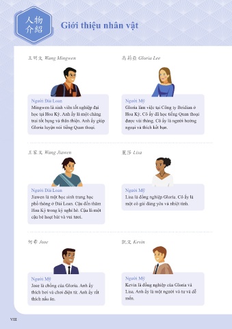 Gloria luyện nói tiếng Quan thoại. ngoại và thích kết bạn.