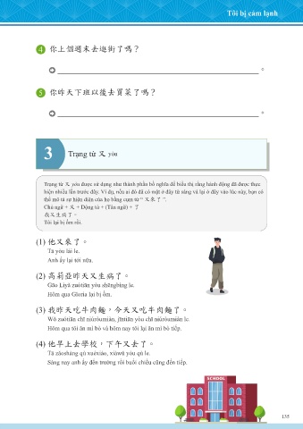 Trạng từ 又 yòu được sử dụng như thành phần bổ nghĩa để biểu thị rằng hành động đã được thực