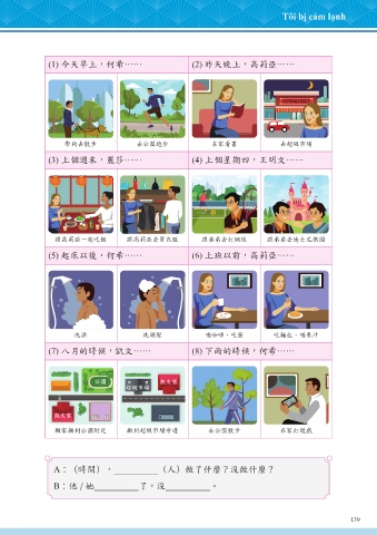A:(時間), (人)做了什麼?沒做什麼?