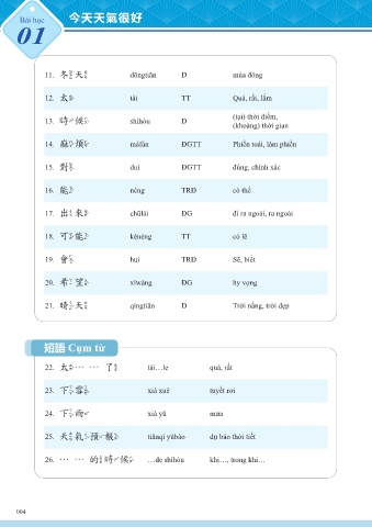 21. 晴天 qíngtiān D Trời nắng, trời đẹp