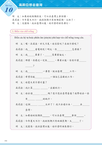 Điền các ký tự hoặc phiên âm (pinyin) phù hợp vào chỗ trống trong câu.