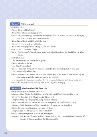 Gloria: Mình đi rồi. Mình đã đến bệnh viện gần nhà. Bác sĩ nói rằng mình bị cảm lạnh.