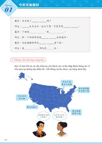 bốn mùa tại những địa điểm đó. Viết thông tin thu được vào bảng dưới đây.