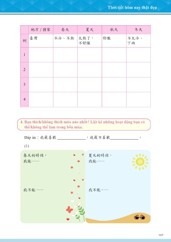 4. Bạn thích/không thích mùa nào nhất? Liệt kê những hoạt động bạn có