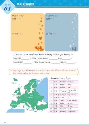 5. Hãy chọn một đất nước ở Châu Âu và tìm hiểu về thời tiết của nước đó.