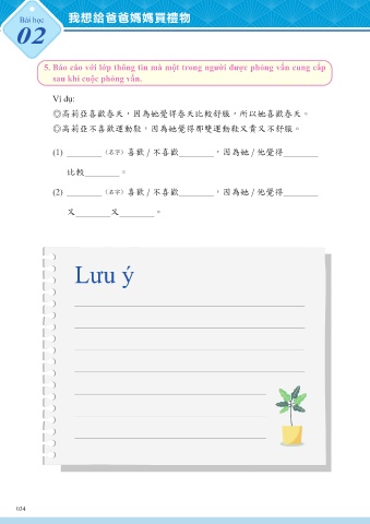 (1) (名字)喜歡 / 不喜歡 ,因為她 / 他覺得