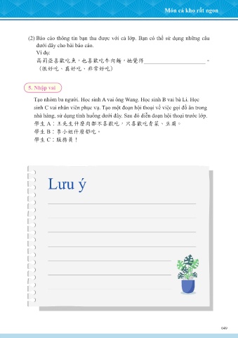 Tạo nhóm ba người. Học sinh A vai ông Wang. Học sinh B vai bà Li. Học