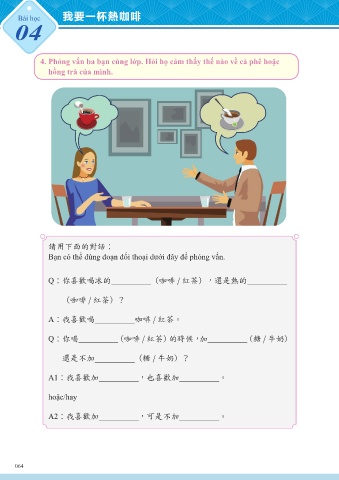 4. Phỏng vấn ba bạn cùng lớp. Hỏi họ cảm thấy thế nào về cà phê hoặc