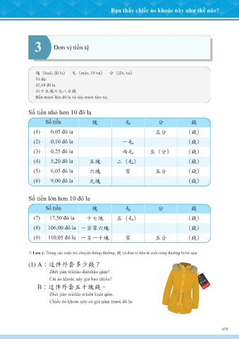 ※Lưu ý: Trong các cuộc trò chuyện thông thường, 錢 và đơn vị tiền tệ cuối cùng thường bị bỏ qua.