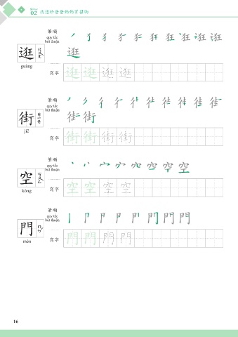 Bài học 02 我想給爸爸媽媽買禮物 筆順 quy tắc bút thuận 逛 guàng 寫字 逛逛 逛 逛 筆順 quy tắc bút thuận 街 jiē 寫字 街街 街 街 筆順 quy tắc bút thuận 空 kòng 寫字 空空 空 空 筆順 quy tắc bút thuận 門 mén 寫字 門門 門 門 16