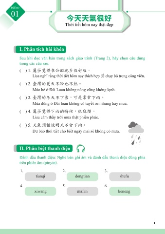 ( ) 4. 麗莎覺得下雨的時候,很麻煩。