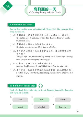 ( ) 1. 高莉亞在一家賣手機的公司工作,公司有三十幾個人。