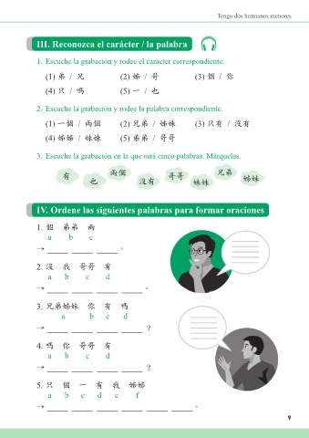 1. Escuche la grabación y rodee el carácter correspondiente.
