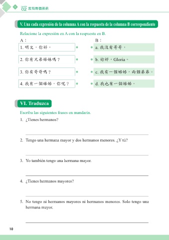 2. Tengo una hermana mayor y dos hermanos menores. ¿Y tú?